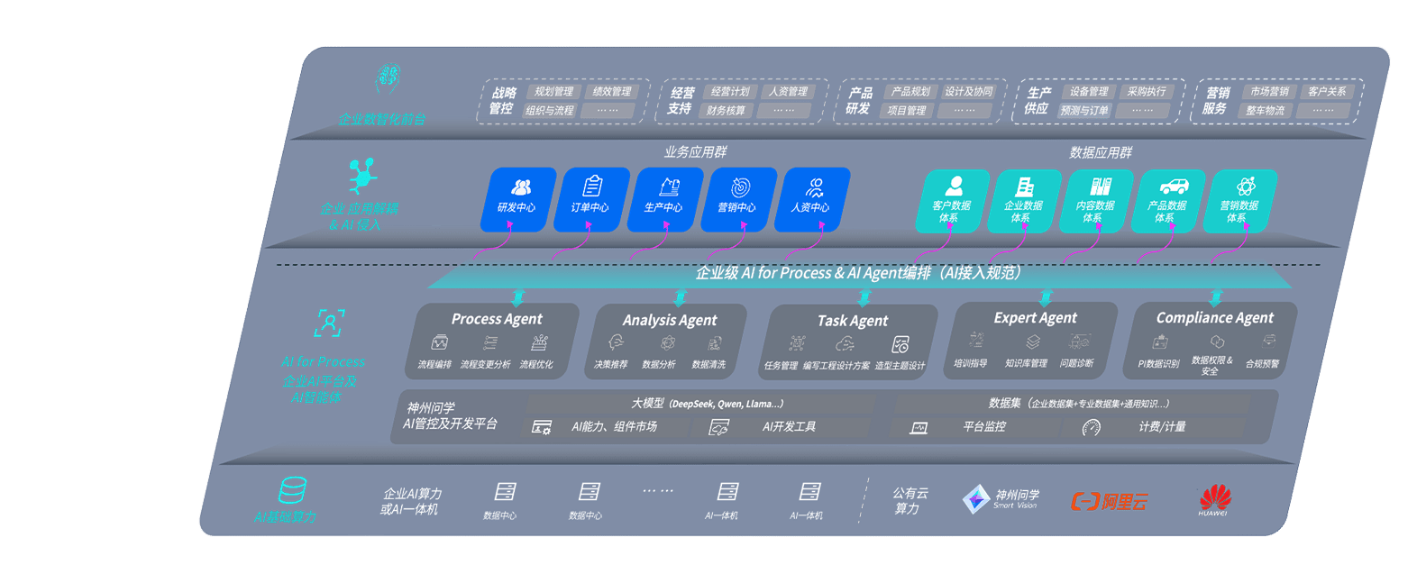 壹号平台问学智车解决方案是一套基于AI技术的汽车行业智能化系统,,,,覆盖从底层算力到顶层AI应用的全栈方案。。方案由算力层、、、、模型层和应用层组成:算力层,,,方案支持多种一体机配置,,具备云端灵活部署、、多云适配以及动态优化计算资源的能力;模型层,,,,壹号平台问学平台版提供了企业级AI应用一站式构建与管理平台,,,,支持基于后训练强化技术的汽车企业专属模型的训练、、、、评测和运营;应用层,,壹号平台问学DeepSeek版提供包括超级员工、、智能招采、、、、智能营销、、、、智能客服、、AI for BI等一系列解决方案,,可助力汽车行业实现数字化转型,,,,让管理更智能、、响应更敏捷。。。。